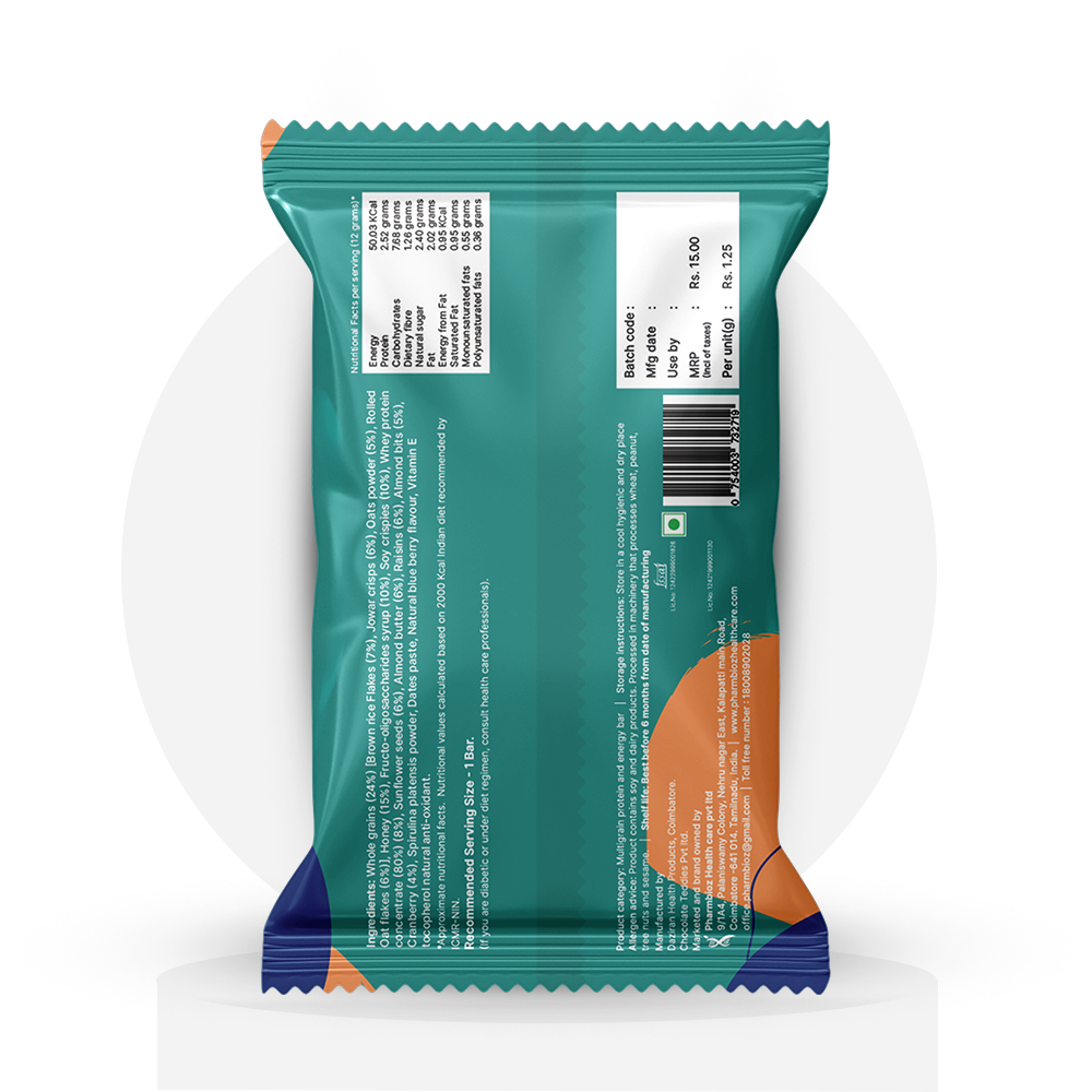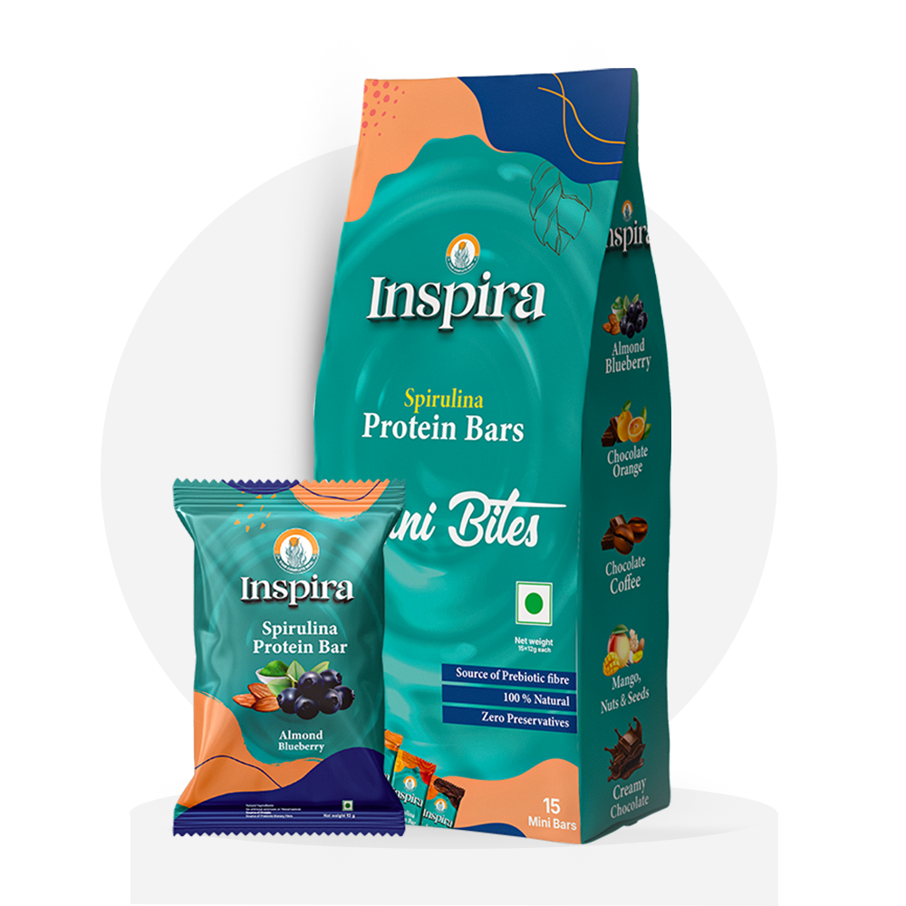 Fuel your body and satisfy your cravings with the wholesome blend of crunchy almonds and juicy blueberries. These mini bites offer a naturally sweet, tangy flavor and are loaded with superfood spirulina, 60% multigrains, and prebiotic fiber for sustained energy and better digestion.